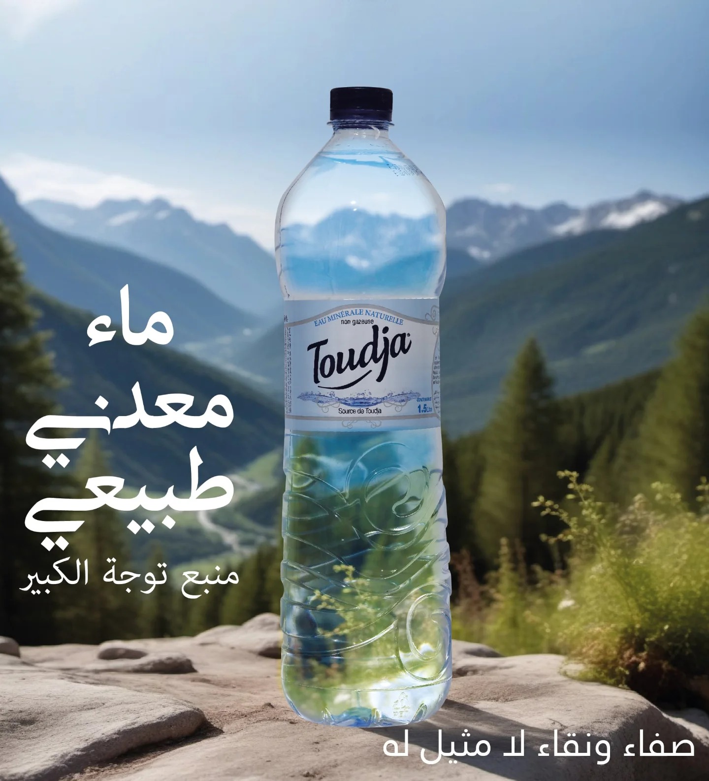 Conditionnée dans des bouteilles en PET légères et recyclables, l’eau Toudja est disponible en plusieurs formats, notamment 0,5 L et 1,5 L, afin de s’adapter à tous les modes de consommation : à la maison, au bureau, lors d’activités sportives ou en déplacement.